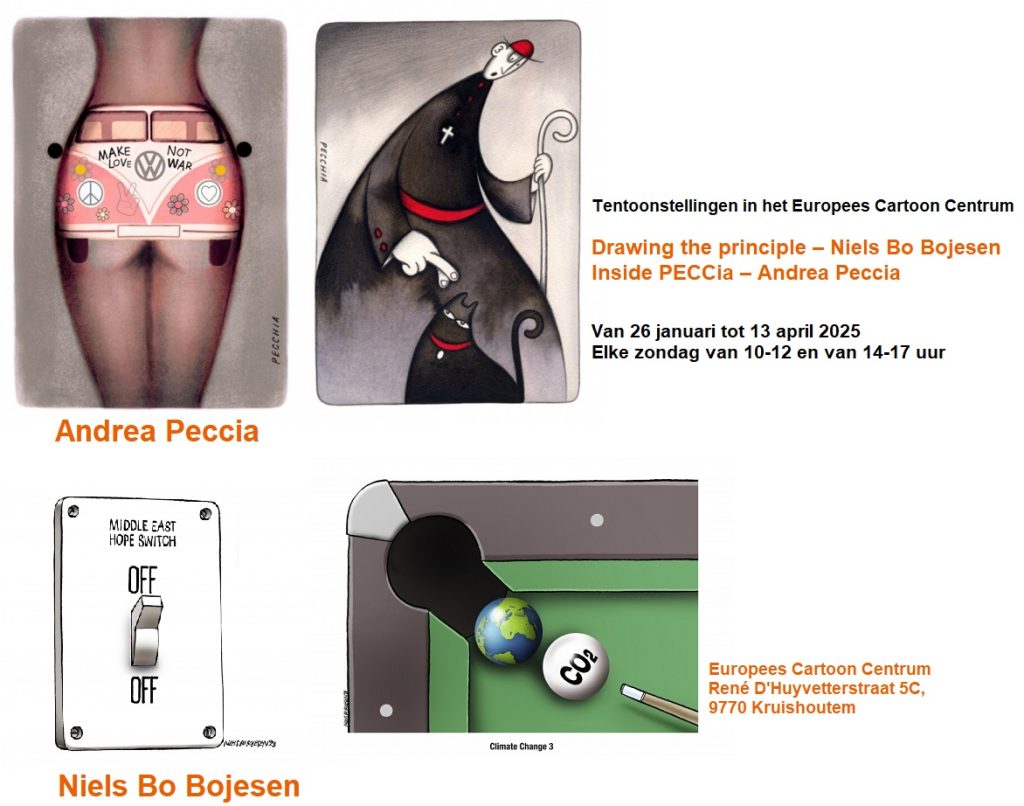 9 januari 2025Tentoonstellingen in het Europees Cartoon Centrum Drawing the principle – Niels Bo Bojesen Inside PECCia – Andrea Peccia Van 26…