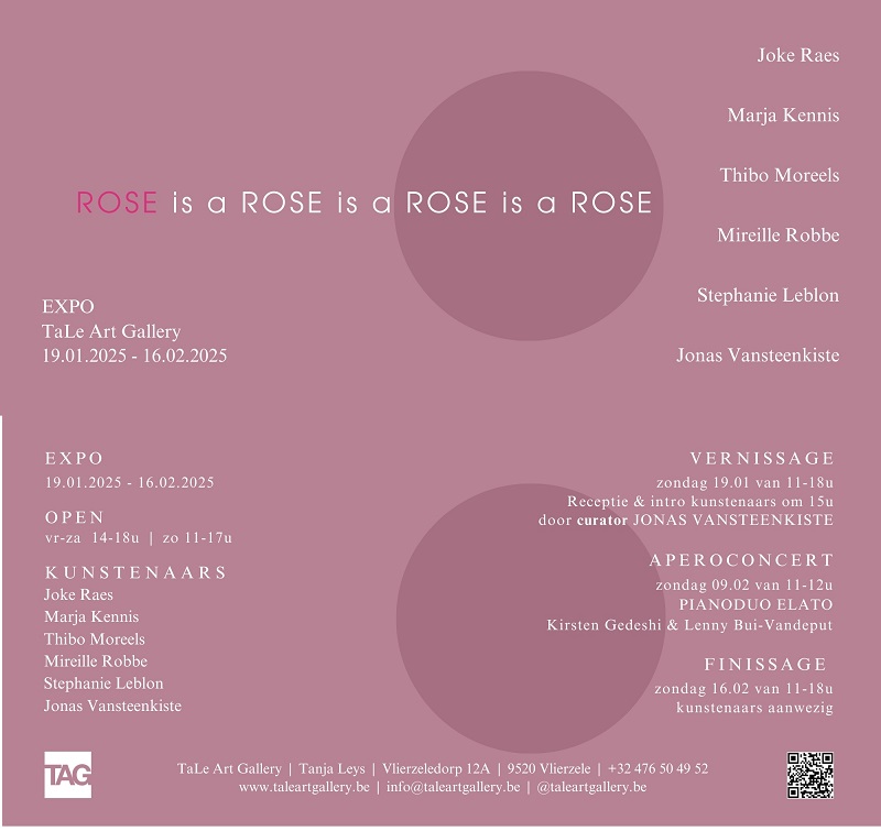 11 januari 2025Nieuwe expo in TaLe Art Gallery van 19/01 tot en met 16/02 Kunstenaars: Joke Raes - Marja Kennis - Thibo Moreels - Mireille…