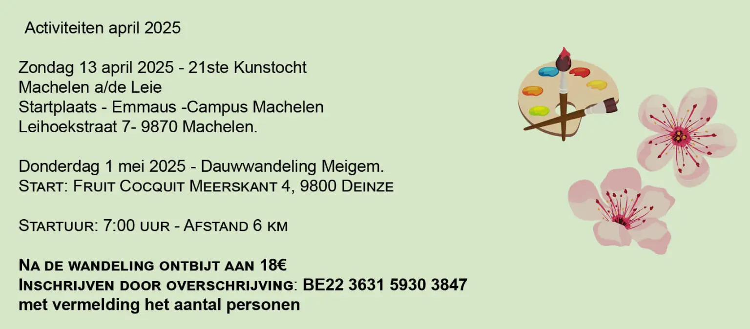 Zondag 13 april 2025 – 07.00-15.00 aankomst 18 u