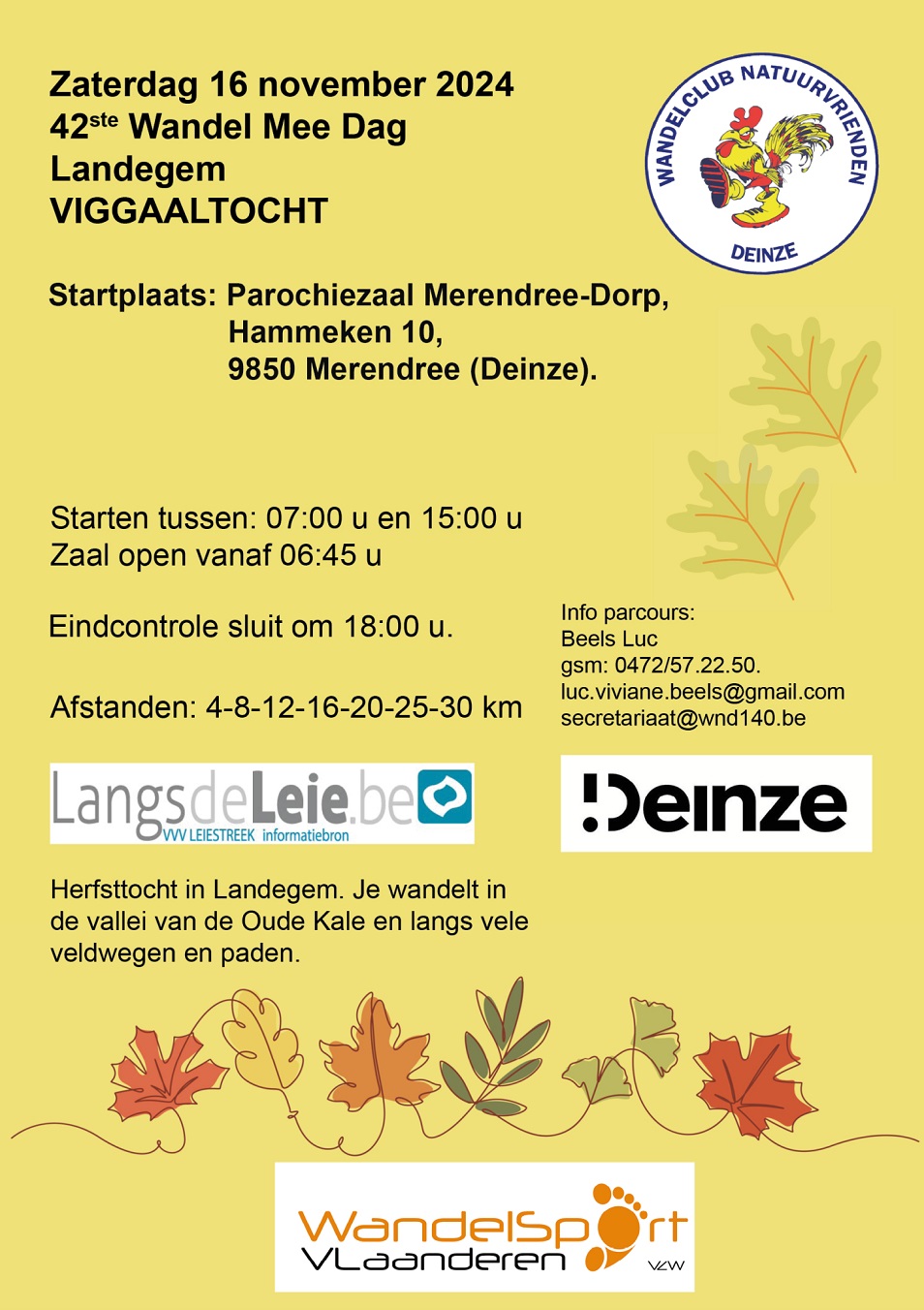 Op zaterdag 16 november 24 organiseert de Wandelclub De Natuurvrienden Deinze