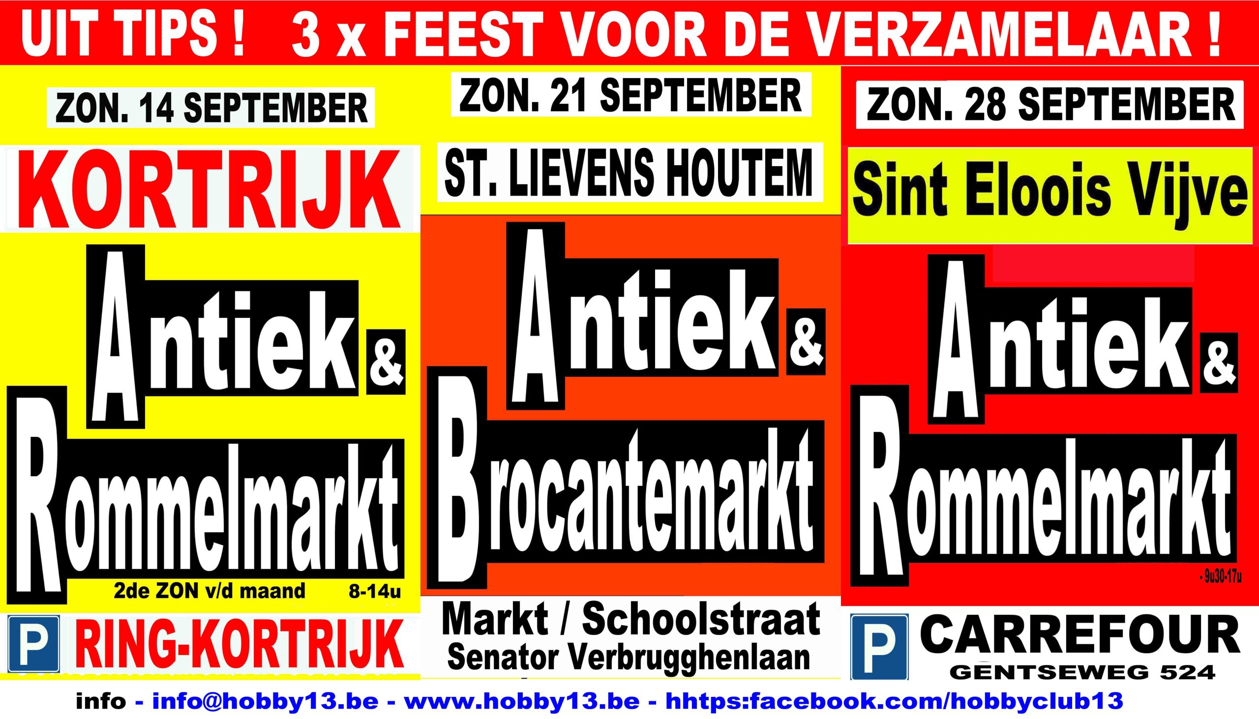 Zondag 28 september 2025 SINT ELOOIS VIJVE (8793) Antiek & Rommelmarkt parking GB Carrefour Gentseweg 524 tot 17:00