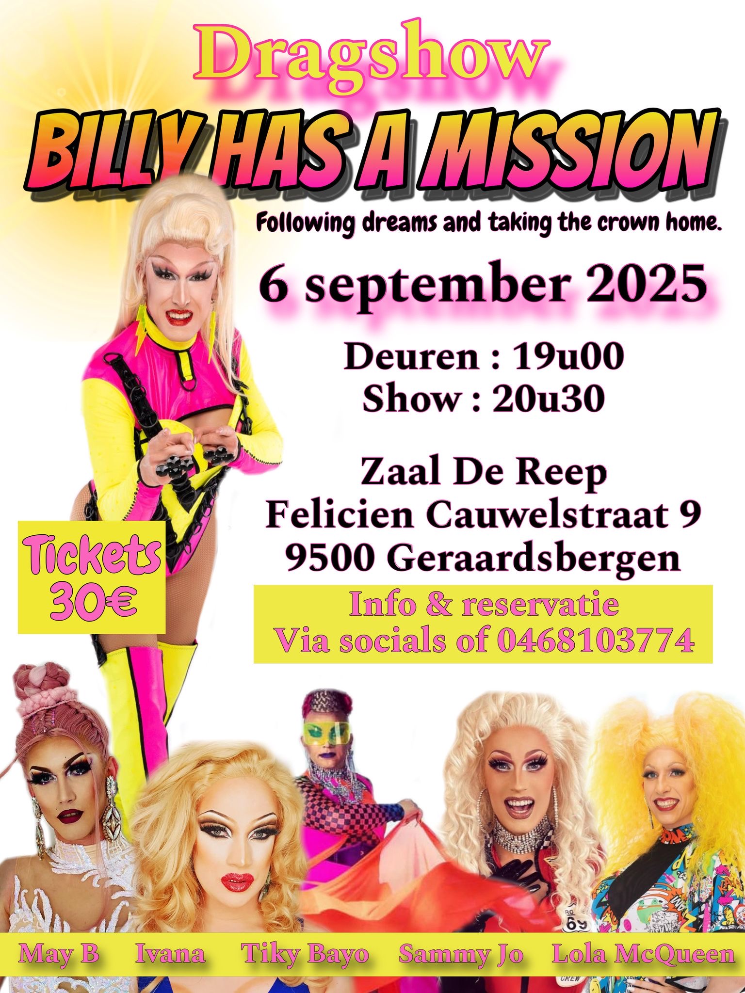 In aanloop naar haar deelname aan Miss Travestie België 2026 – die plaatsvindt op 28 februari 2026 in Oudenaarde – keert Billy terug naar haar roots, Geraardsbergen, om er een unieke benefietshow te brengen.