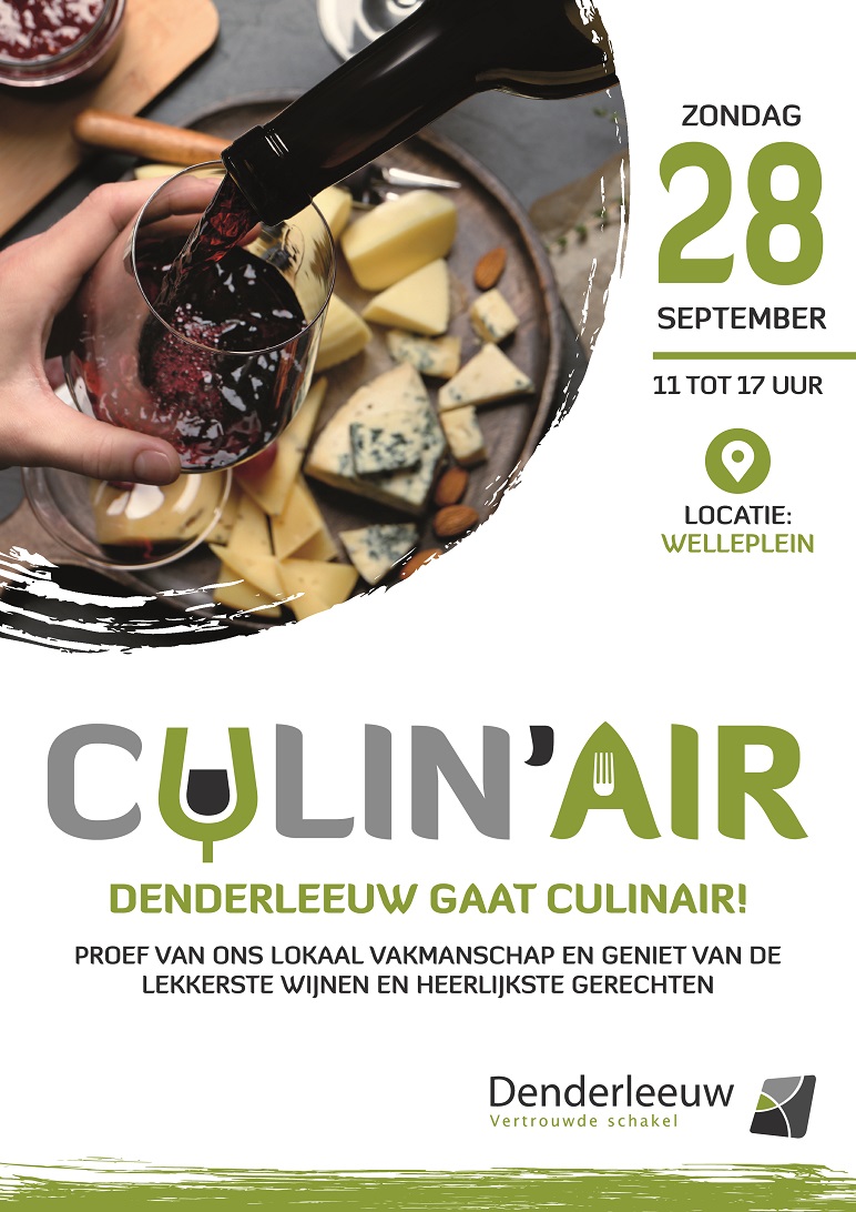 “Culin’air is een zeer succesvol evenement dat de Denderleeuwse wijnhandelaars en restaurateurs samenbrengt en bezoekers onderdompelt in het lokale culinaire aanbod. Je kan er genieten van een lekker glas wijn, beroep doen op de expertise en kennis van onze lokale wijnhandelaars en proeven van de lekkerste en verrassendste gerechten uit eigen streek. Foodpairing op zijn best dus! Een promopraatje is niet echt nodig, want sinds de start van het evenement, vier edities geleden, bleef het bezoekersaantal en de interesse in het evenement maar groeien”.
