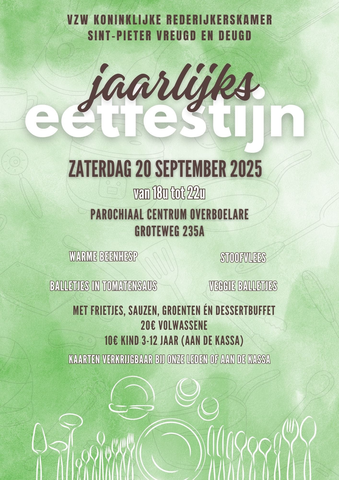zaterdag 20 september vanaf 18u in het Parochiaal Centrum Groteweg te Overboelare.