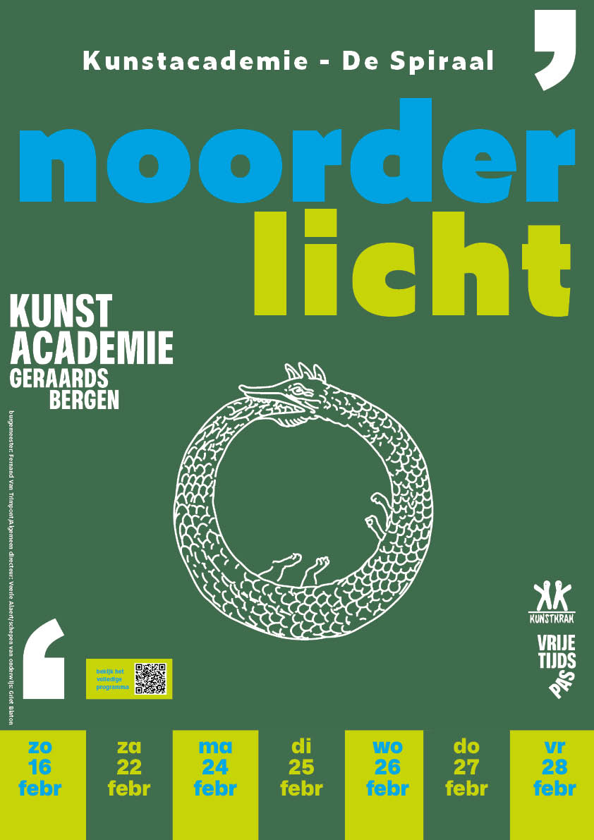 De Kunstacademie Geraardsbergen organiseert ook dit jaar opnieuw een intensieve en inspirerende projectweek. Onder de titel ‘Noorderlicht’ nemen leerlingen en leerkrachten van 22 februari tot 1 maart deel aan tal van concerten, toonmomenten en tentoonstellingen. Ze gaan tijdens deze week aan de slag om de rijke cultuur en kunst van de Scandinavische landen te ontdekken en de mystiek tot leven te brengen.