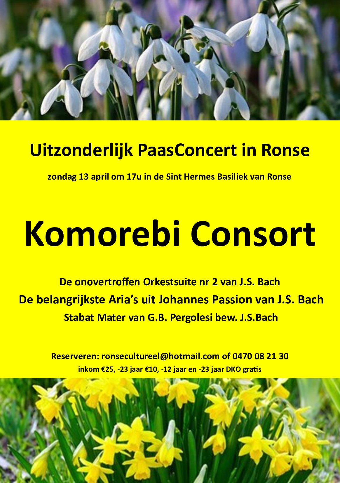 Uitzonderlijk PaasConcert in Ronse zondag 13 april om 17u in de Sint Hermes Basiliek van