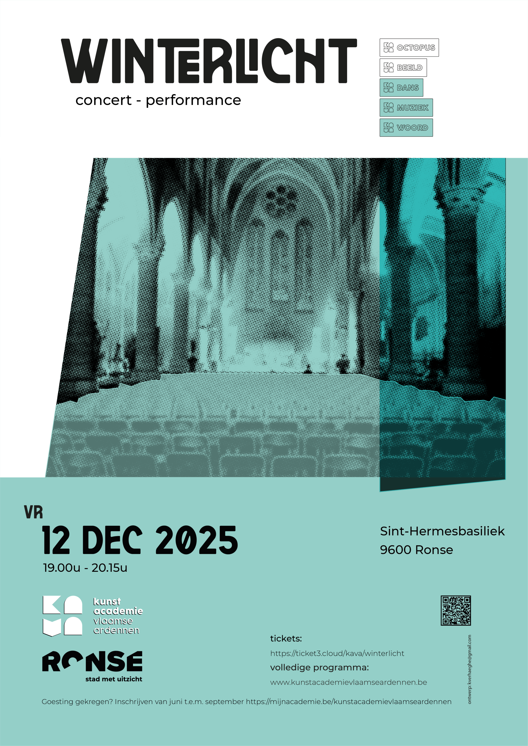 Vrijdag 12/12/2025, 19-20u Sint-Hermesbasiliek Ronse Deuren open vanaf 18u45 Basistarief: €5 / KAVA-leerlingen en -18j: