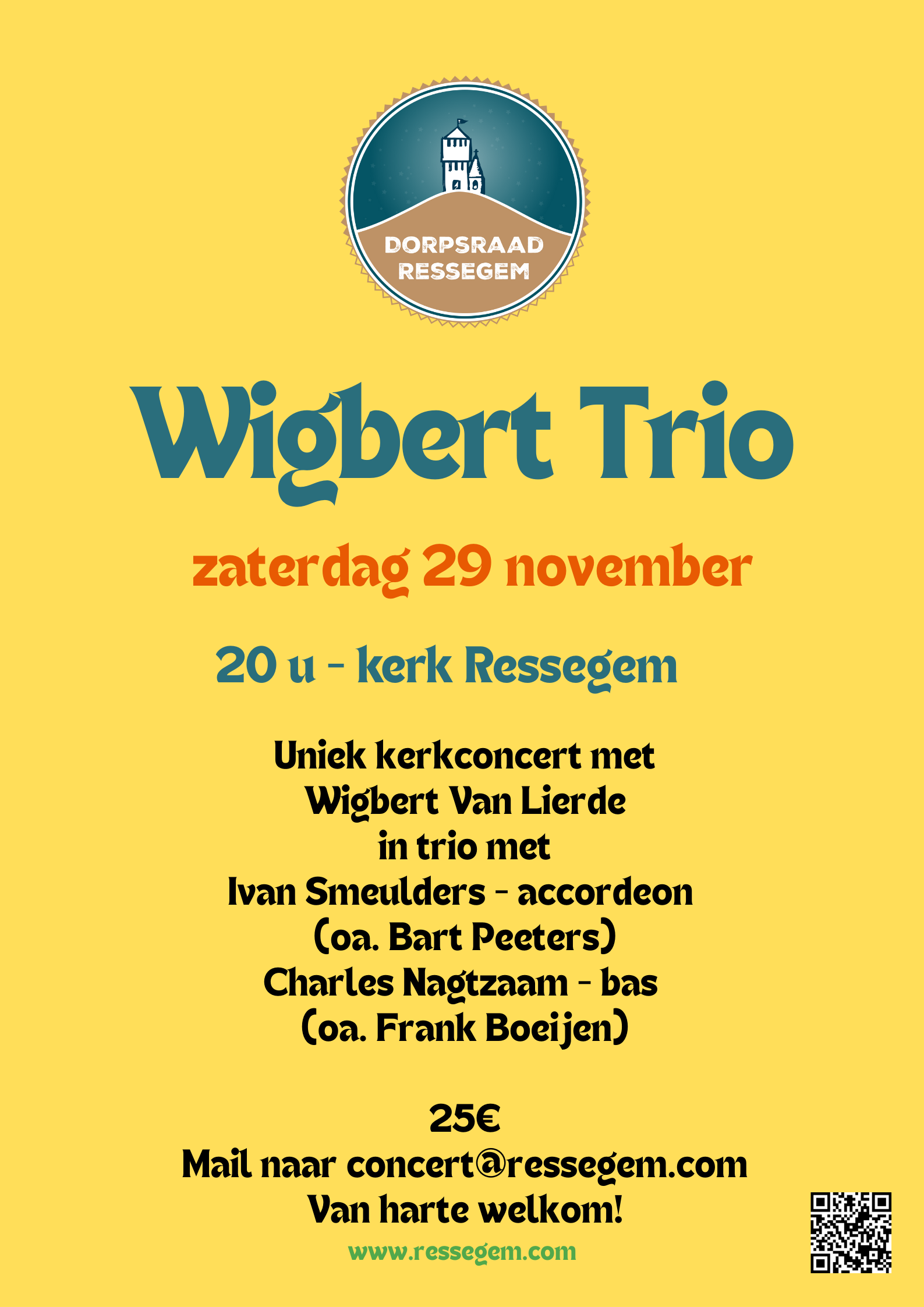 Zaterdag 29 november 2025 Kerk Ressegem – 20u Tickets? 25€ – bestellen via mail naar