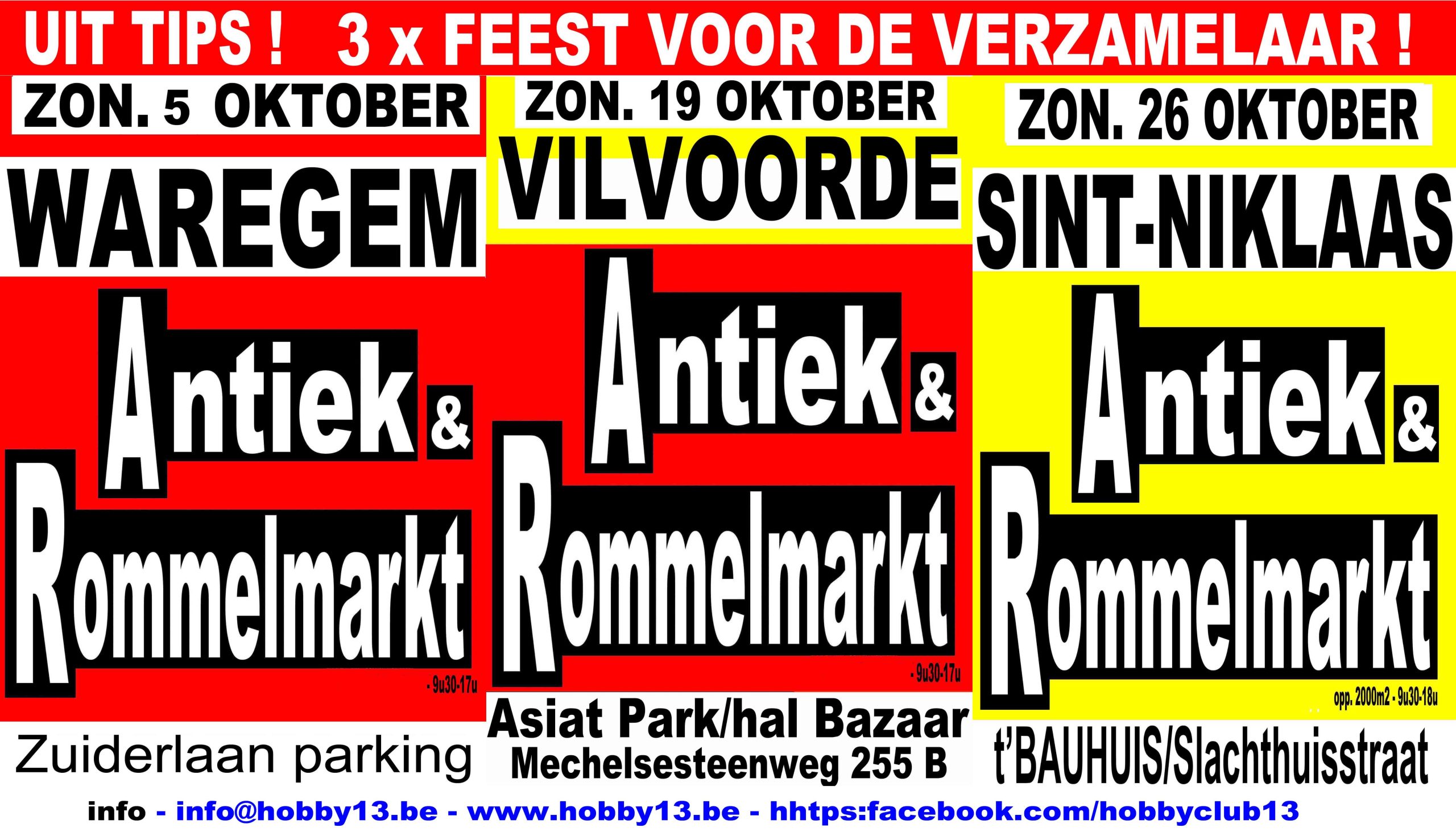 Zondag 26 oktober 2025 SINT NIKLAAS (9100) t’Bauhuis/slachthuisstraat 64-68 Antiek & Rommelmarkt indoor van 09:30 tot