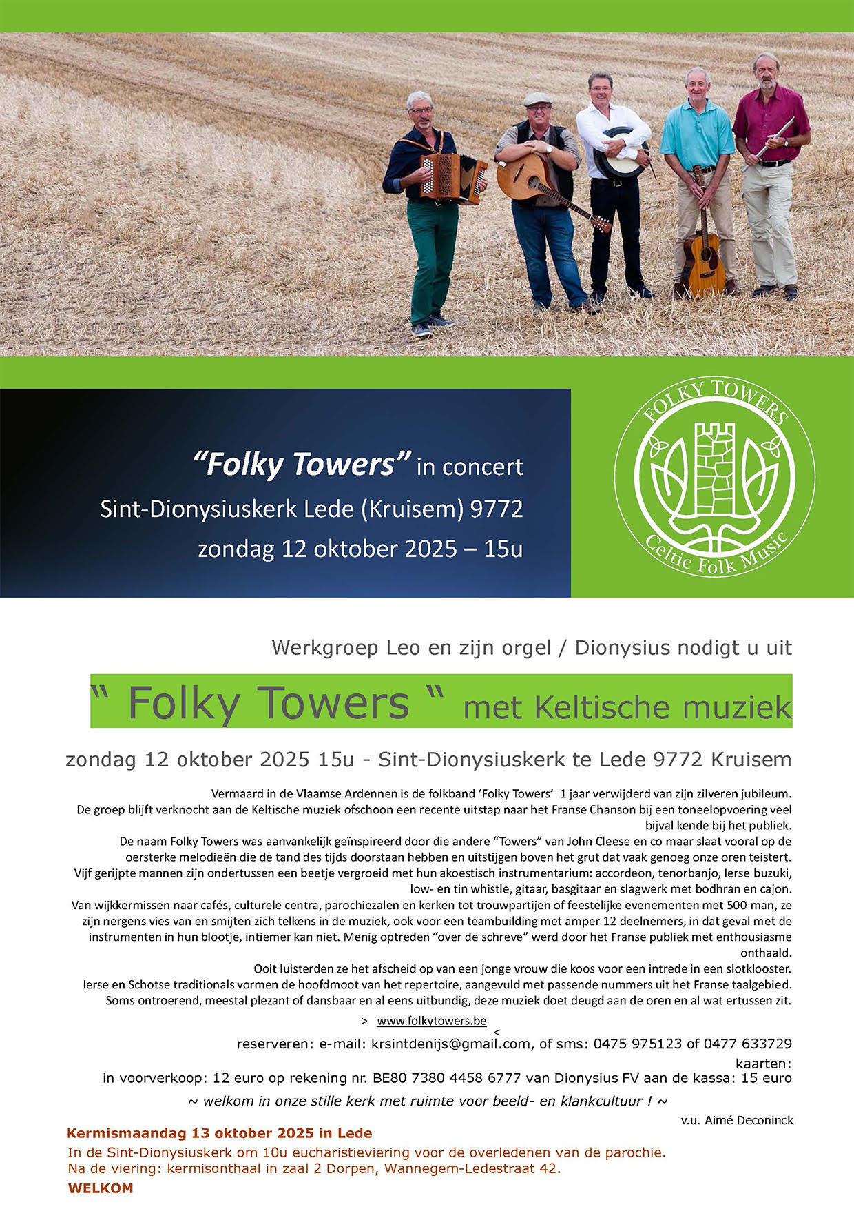 zondag 12 oktober om 15:00 Sint Dionysuskerk Lede tickets 12 € kassa 15 € reserveren