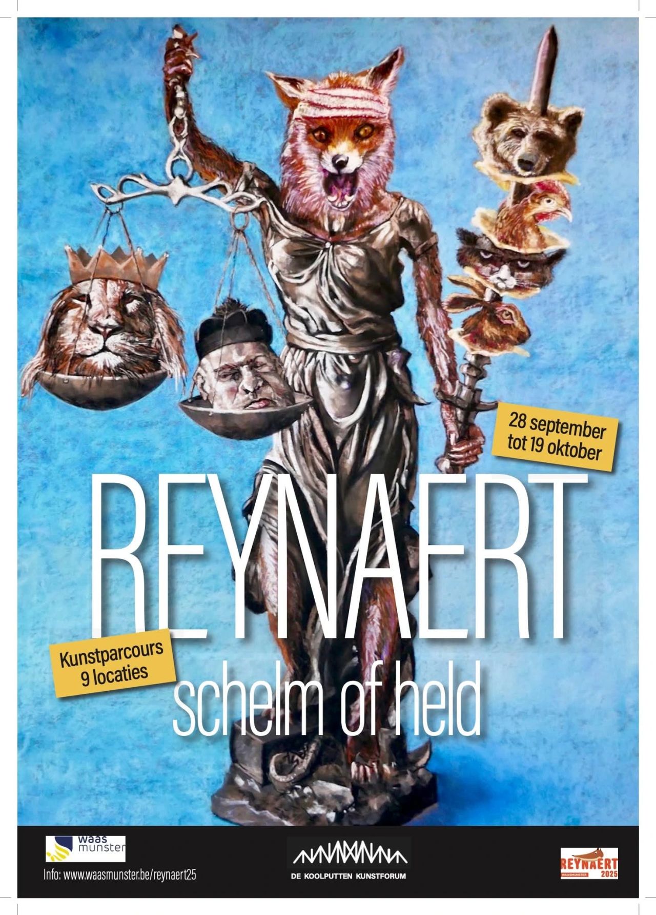 Op 9 uitzonderlijke plekken in Waasmunster maak je kennis met beeldende kunst, fotografie en poëzie. Beeldend kunstenaars en dichters geven hun interpretatie van Reynaert, de andere dierenfiguren of thema’s binnen het verhaal. Op elke plek staat een van de figuren uit het klassieke Reynaert verhaal centraal. Hoe kunst, cultuur en literatuur elkaar vinden. Met kwalitatieve en hoogstaande werken van lokale en (inter-)nationale kunstenaars. meer info