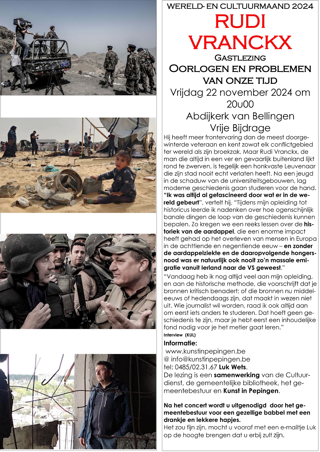 In deze lezing brengt Rudi Vranckx verslag uit en geeft duiding bij grote wereldconflicten.