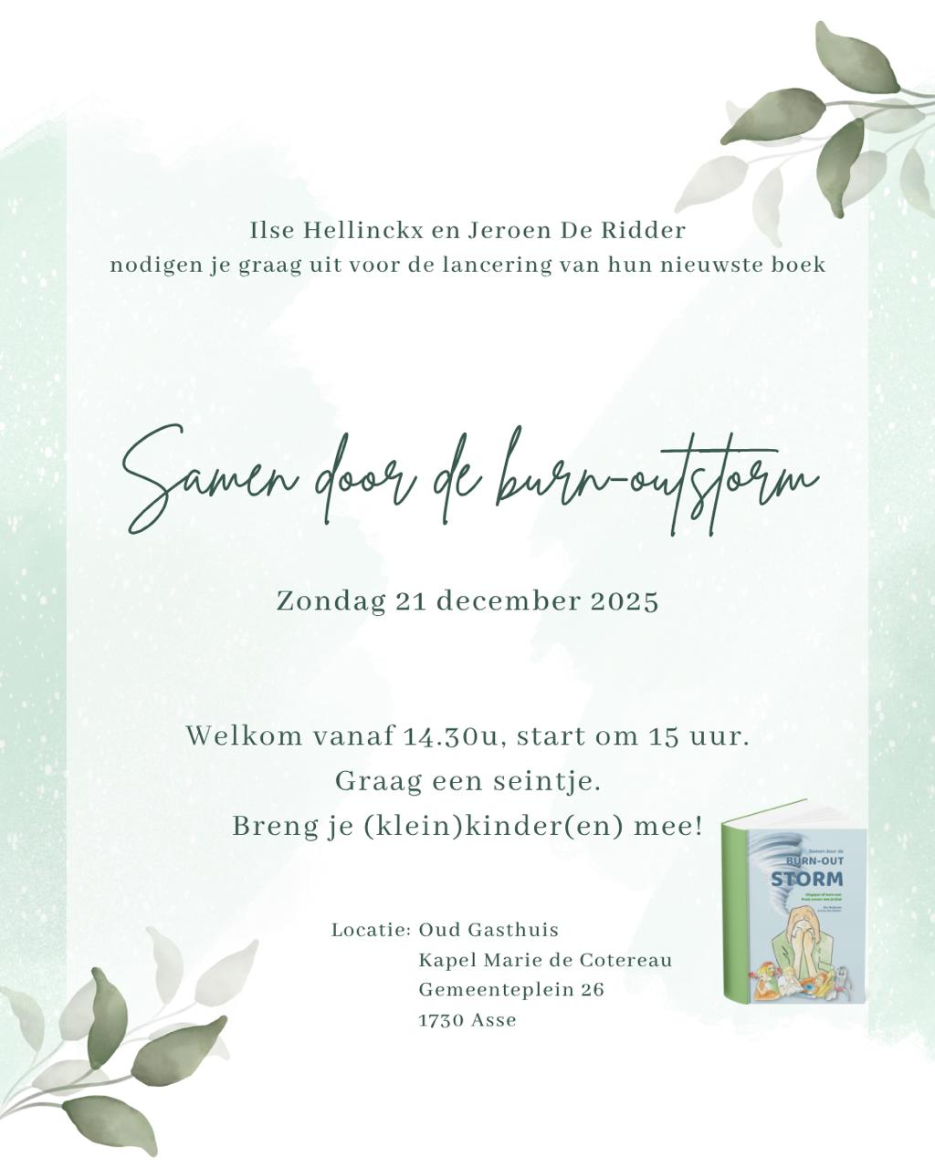 Wat zeg je tegen je kind wanneer mama of papa in een burn-out zit? Burn-outcoach Ilse Hellinckx kreeg die vraag steeds vaker van cliënten die uitgeput en in burn-out waren maar hun kinderen niet wisten uit te leggen wat er aan de hand was. Na een toevallige ontmoeting met kinderboekenauteur Jeroen De Ridder op de boekenbeurs besloten ze samen iets te doen aan dat hiaat. Het resultaat is het unieke kinderboek Samen door de burn-outstorm, een warme gids die gezinnen helpt om burn-out bespreekbaar te maken.