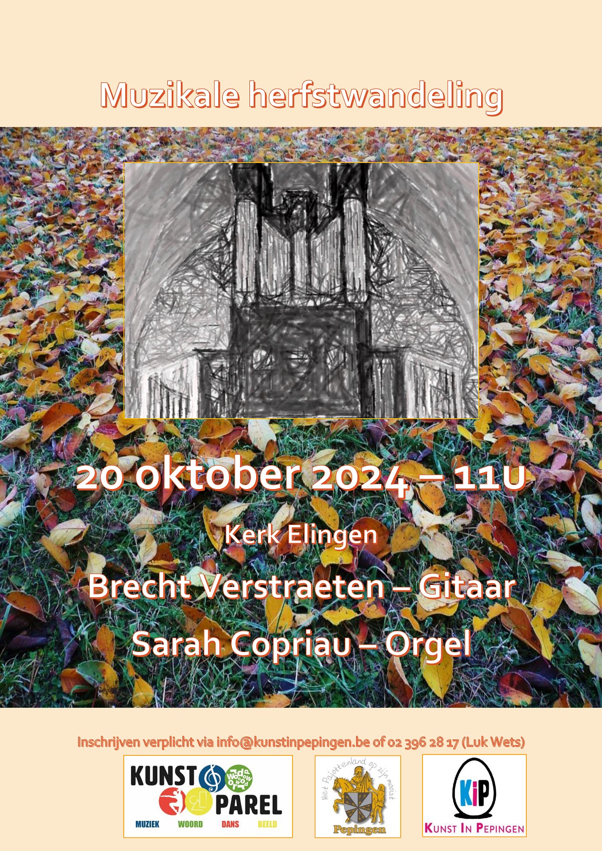 Gelieve u vooraf aan te melden via e-mail met vermelding ORGEL info@kunstinpepingen.be