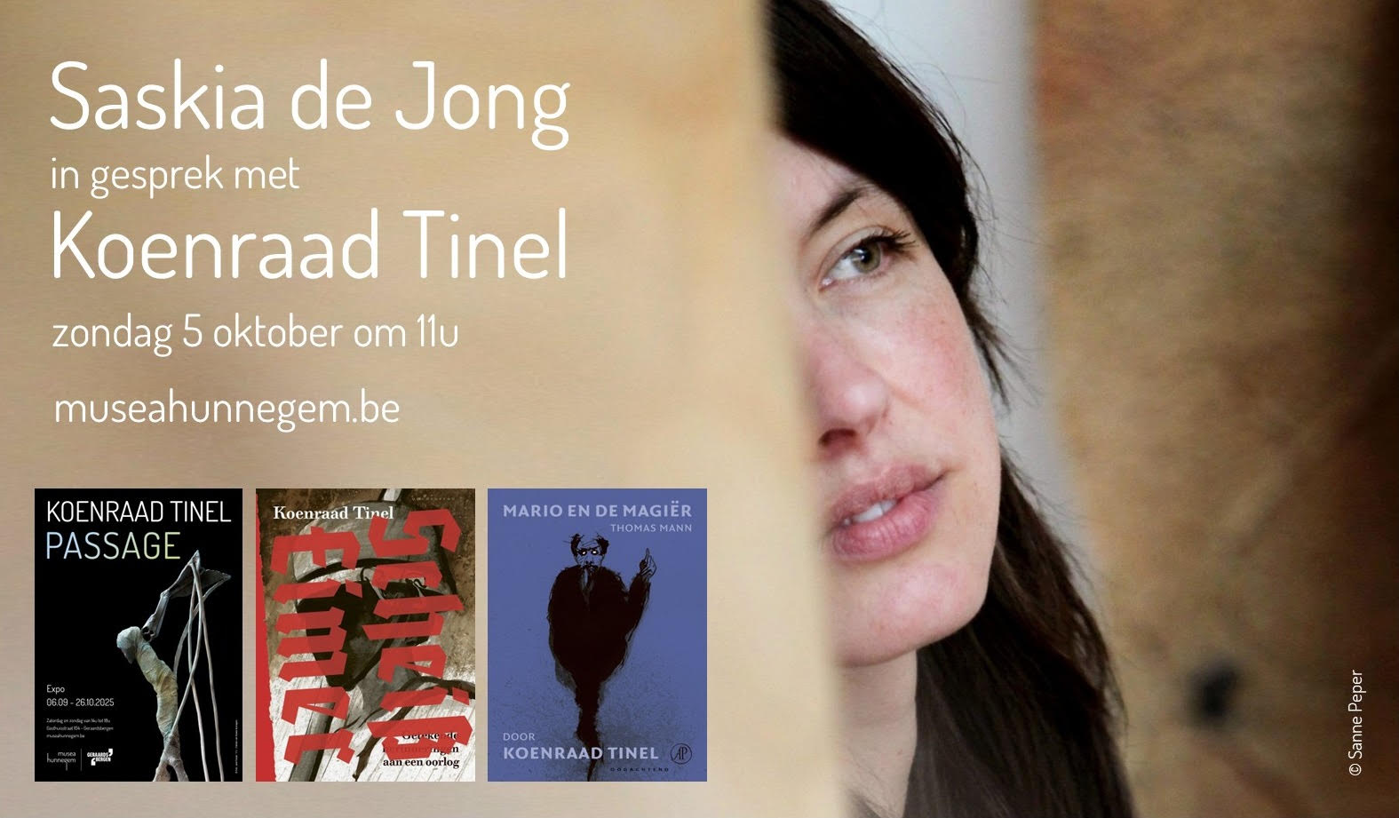 De Vrienden van Musea Hunnegem nodigen u van harte uit op 5 oktober om 11u voor een matinee waarbij de gelauwerde Nederlandse schrijfster en dichteres Saskia de Jong in gesprek zal gaan met kunstenaar Koenraad Tinel over zijn werk, zijn graphic novels ‘Scheisseimer’ en ‘Mario en de magiĆ«r’ en over de expo ‘Passage’ die momenteel te zien is in Musea Hunnegem in Geraardsbergen.