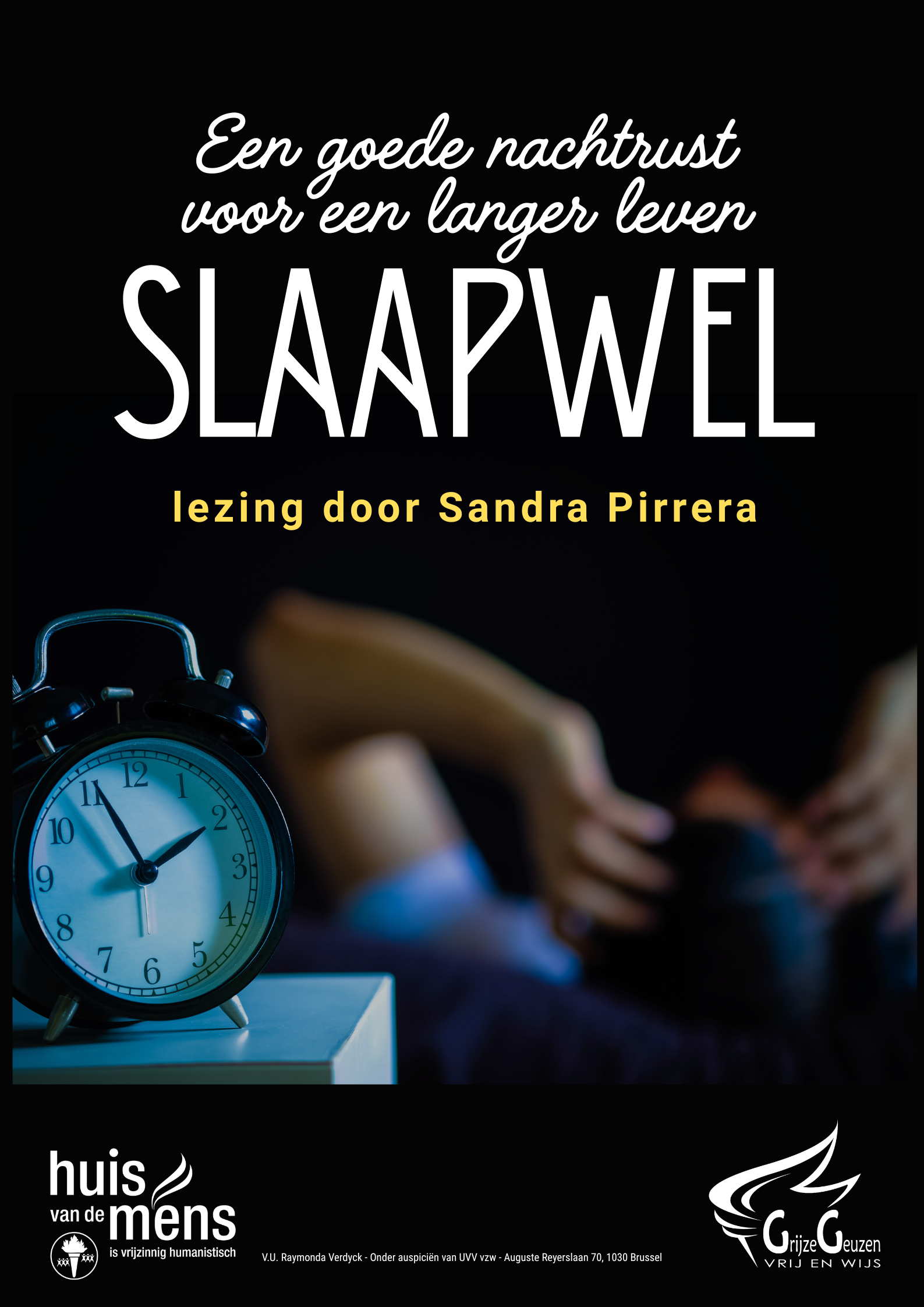 In deze voordracht staat slapen in de midden en late volwassenheid centraal. Sandra Pirrera licht op een wetenschappelijk onderbouwde manier toe hoe slaap doorheen je leven verandert en wat een goede slaap kan bevorderen of in de weg kan staan. Ze gaat ook dieper in op enkele slaapstoornissen die vaker voorkomen naarmate we ouder worden.