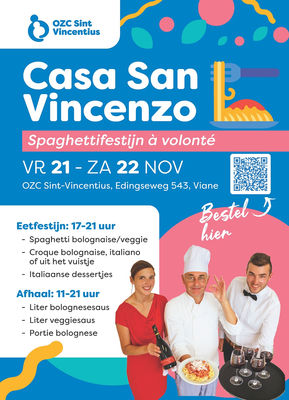 “Casa San Vincenzo is voor ons veel meer dan een eetfestijn,” zegt Ann Taelemans, algemeen directeur van OZC Sint-Vincentius. “Het is een moment waarop de buurt letterlijk mee aan tafel schuift met onze werking. Met elke bestelling ondersteunen mensen rechtstreeks de zorg en levenskwaliteit van onze bewoners.”