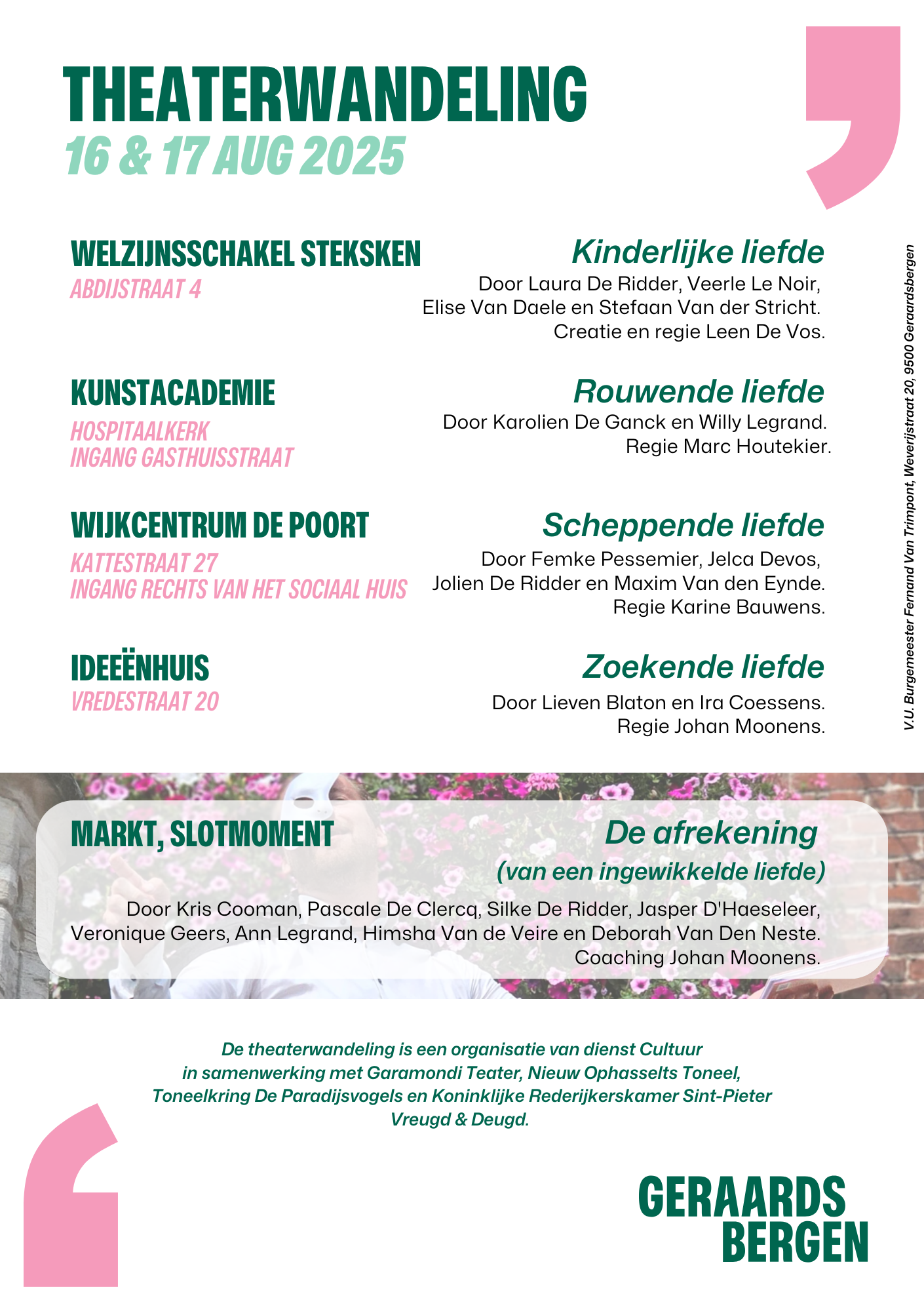 Stad Geraardsbergen i.s.m. Garamondi Teater, Nieuw Ophasselts Toneel, Sint-Pieter Vreugd en Deugd, Toneelkring De Paradijsvogels.