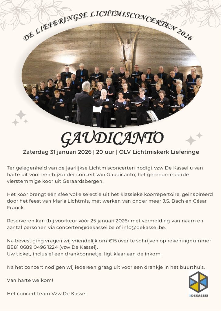 4 januari 2026Zaterdag 31 januari 2026 | 20 uur | OLV Lichtmiskerk Lieferinge Lieferingeplaats 30 Ter gelegenheid van de jaarlijkse Lichtmisconcerten nodigt…
