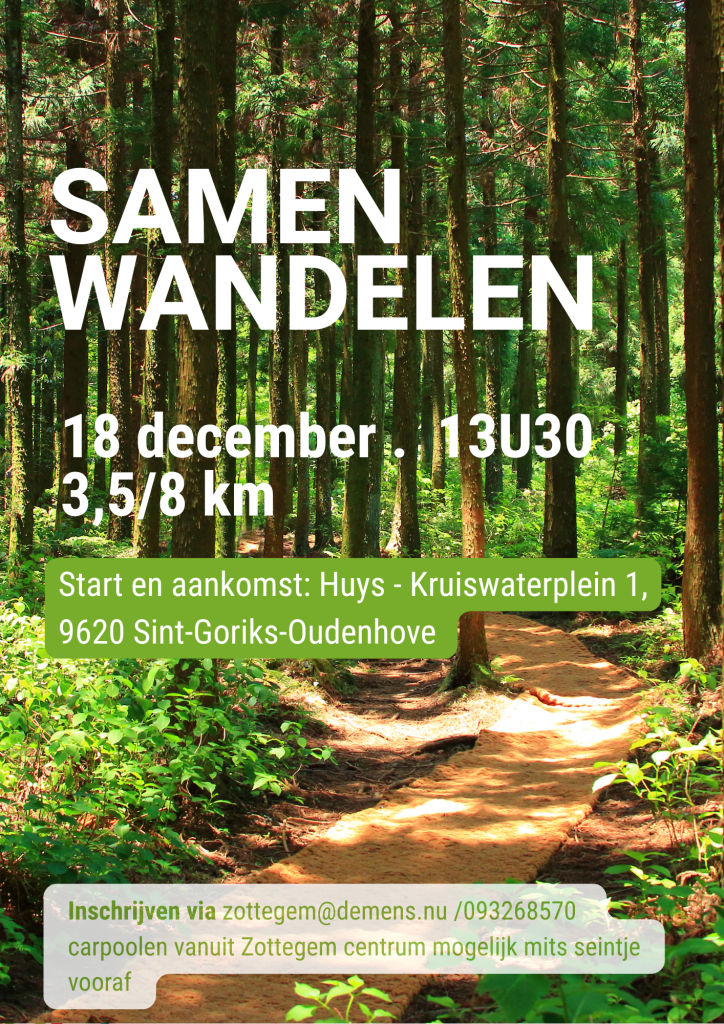 28 november 2025Donderdag 18 december 2025Â - Â 13u30 Huys - Kruiswaterplein 1, 9620 Sint-Goriks-Oudenhove gratis Graag inschrijven voor 13 december via zottegem@deMens.nu…