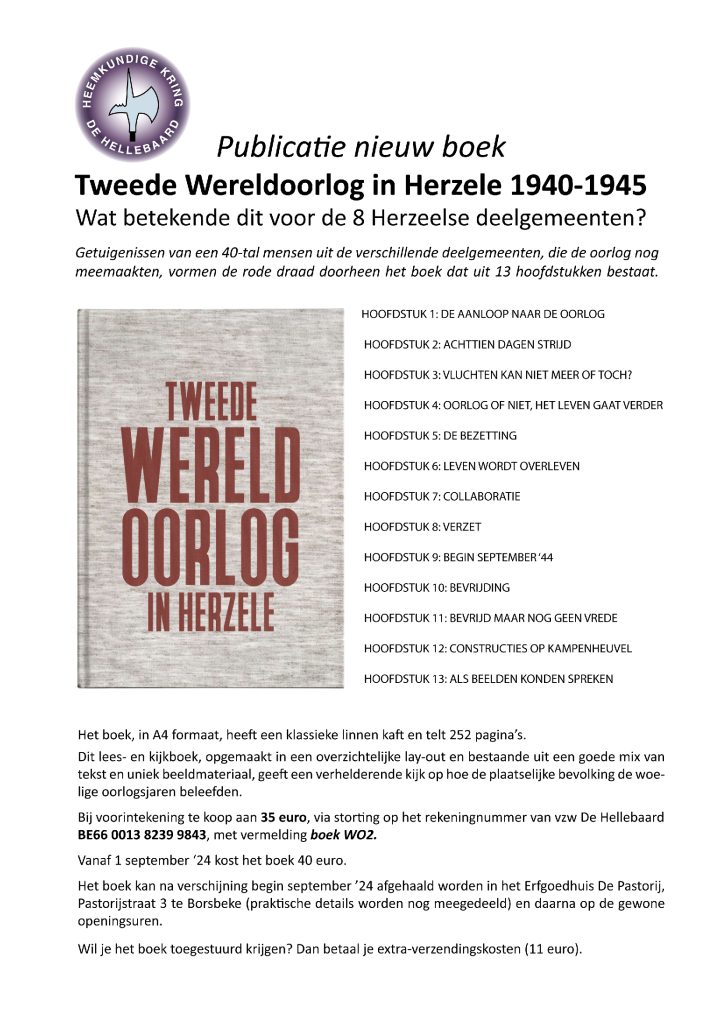 10 augustus 2024Publicatie nieuw boek De Tweede Wereldoorlog in Herzele Alle info vind je op de affiche of  https://www.dehellebaard.be/ Getuigenissen van een…
