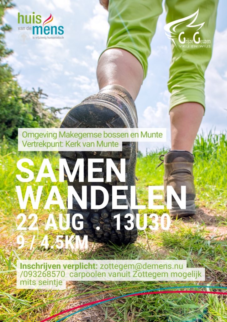 3 augustus 2024Samen Wandelen vrij 22 aug 13u30 Vertrekpunt: Kerk van Munte Munteplein, 9820 Merelbeke Inschrijven verplicht : zottegem@demens.nu Huis van de…