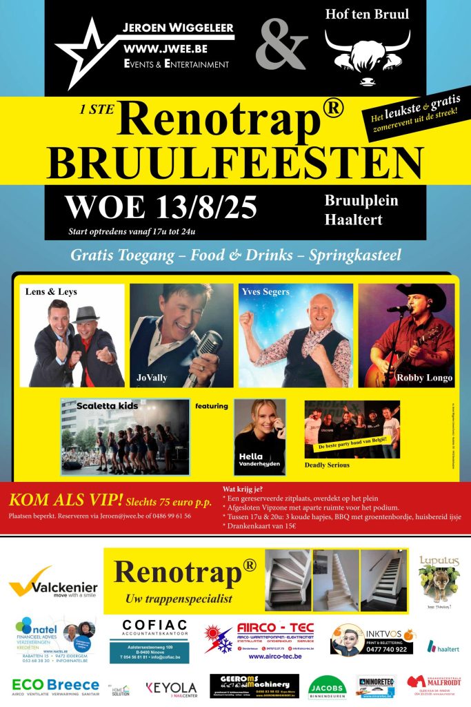 28 juli 2025Woensdag 13 augustus van 17:00 tot 24:00 op het Bruulplein in Haaltert Kom naar het grote volksfeest met gratis optredens!…