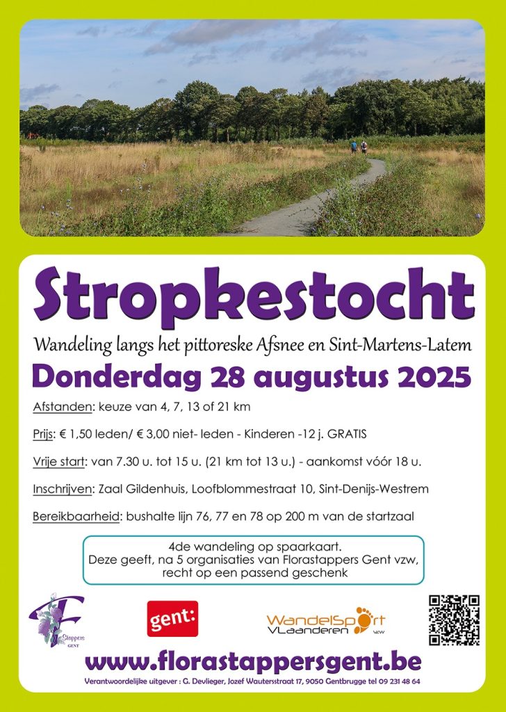 5 juli 2025Donderdag 28 augustus 2025 Zaal Gildenhuis, Loofblommestraat 10 te 9051 Sint-Denijs-Westrem Afstanden: 6, 8, 13 en 21 km Start:Â van 7.30…