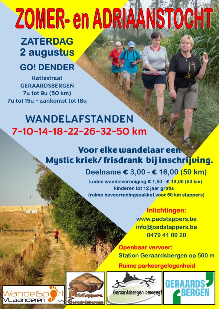 9 juni 2025De Padstappers Zaterdag 2 augustus 2025 Basisschool GO! Dender, Kattestraat, 9500 GERAARDSBERGEN 26ste ADRIAANSTOCHT – Oost-Vlaamse Biergordel 50 km Starten…