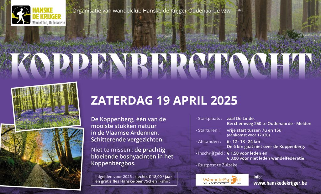 27 januari 2025Zondag 2 februari 2025 - starturen 07.30-15.00 Aankomst 17.00 Startplaats Zaal De Kring Kapittelstraat 7 9700 Oudenaarde Inschrijfgeld leden: €…