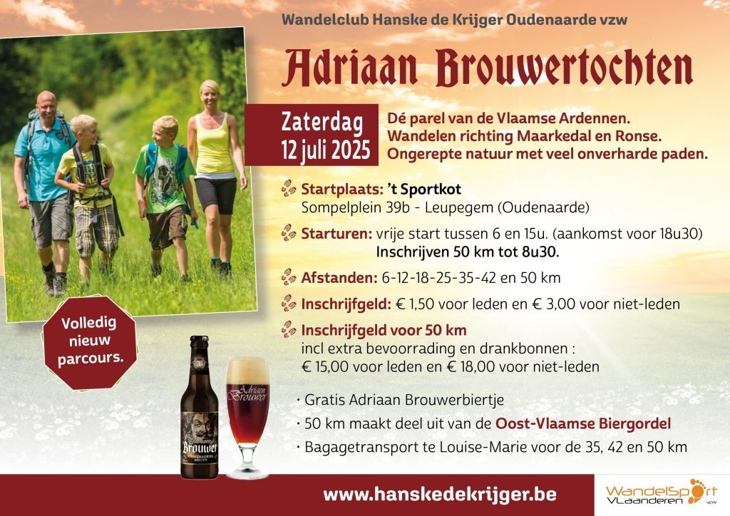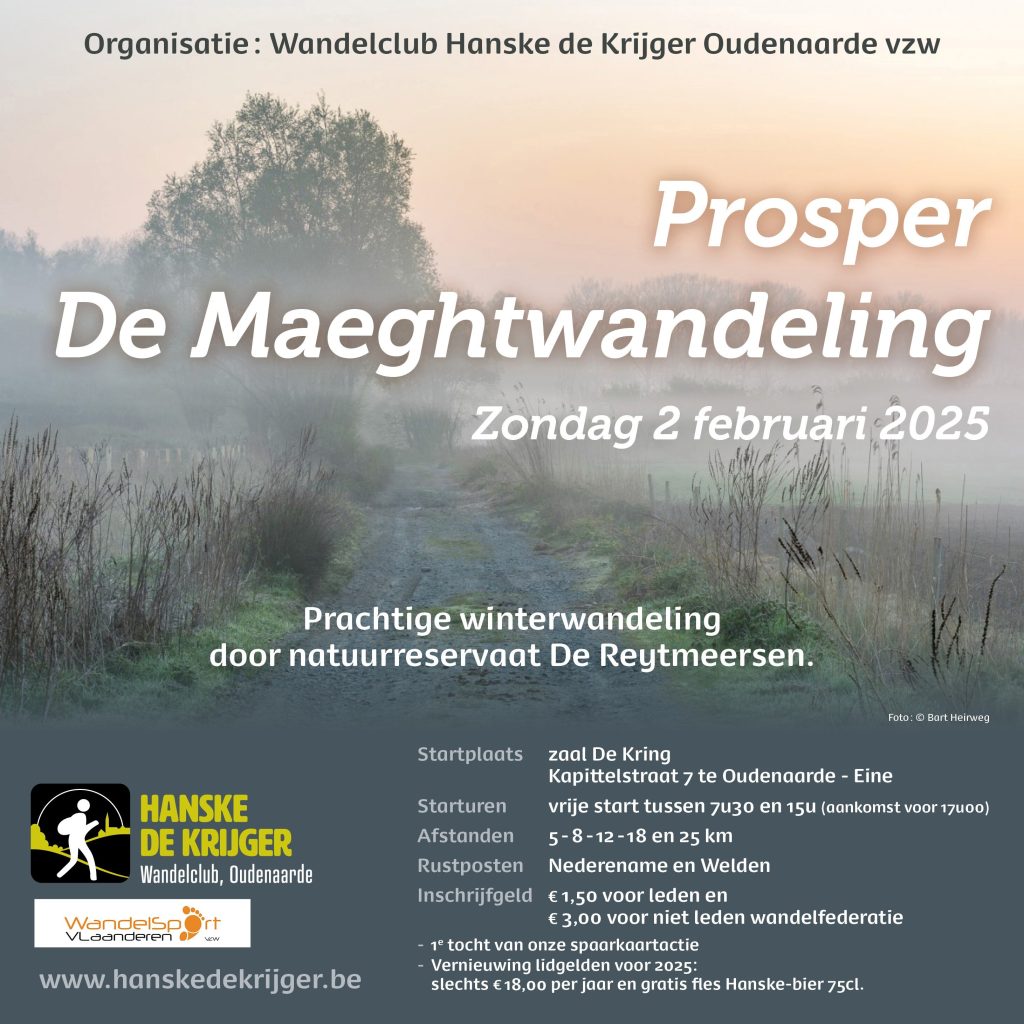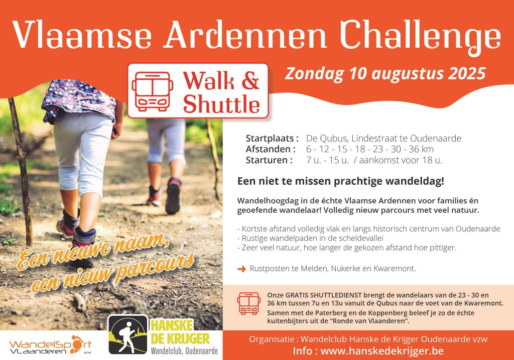 27 januari 2025Walk & Shuttle Zondag 10 augustus 2025 - 07.00-15.00 Aankomst 18.00 Evenementenhal De Qubus Lindestraat 45 9700 Oudenaarde Inschrijfgeld leden:…
