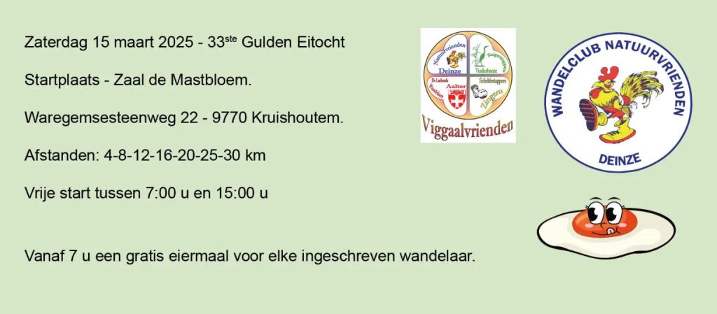 10 maart 2025Op zaterdag 15 maart organiseert de Wandelclub De Natuurvrienden Deinze haar eerste wandeling - de 33ste Gulden Eitocht - in…