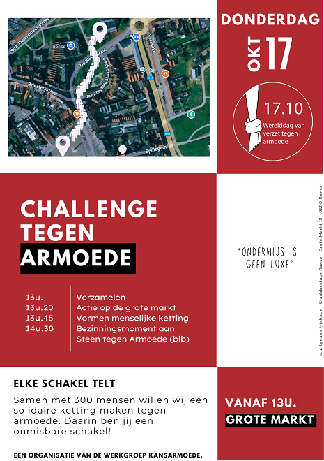 12 oktober 2024Challenge tegen armoede Hand in hand tegen Armoede op 17 oktober 2024 Grote Markt te Ronse verzamelen om 13 uur…