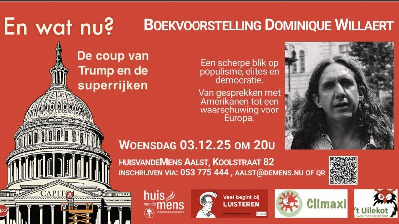 18 november 2025Boekvoorstelling 'En wat nu?' Wo. 03.12, 20u Dominique Willaert is auteur van de boeken ‘Dansen op een ziedende vulkaan’ en van…