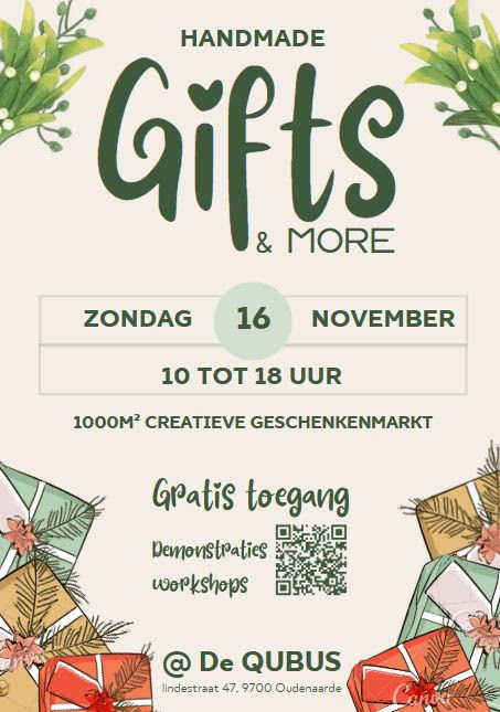 10 september 2025Gifts&more, creatieve geschenkenmarkt met tal van workshops zondag 16/11/2025 De Qubus Lindestraat 47 9700 Oudenaarde Openingsuren: 10u00 - 18u00 Gratis…