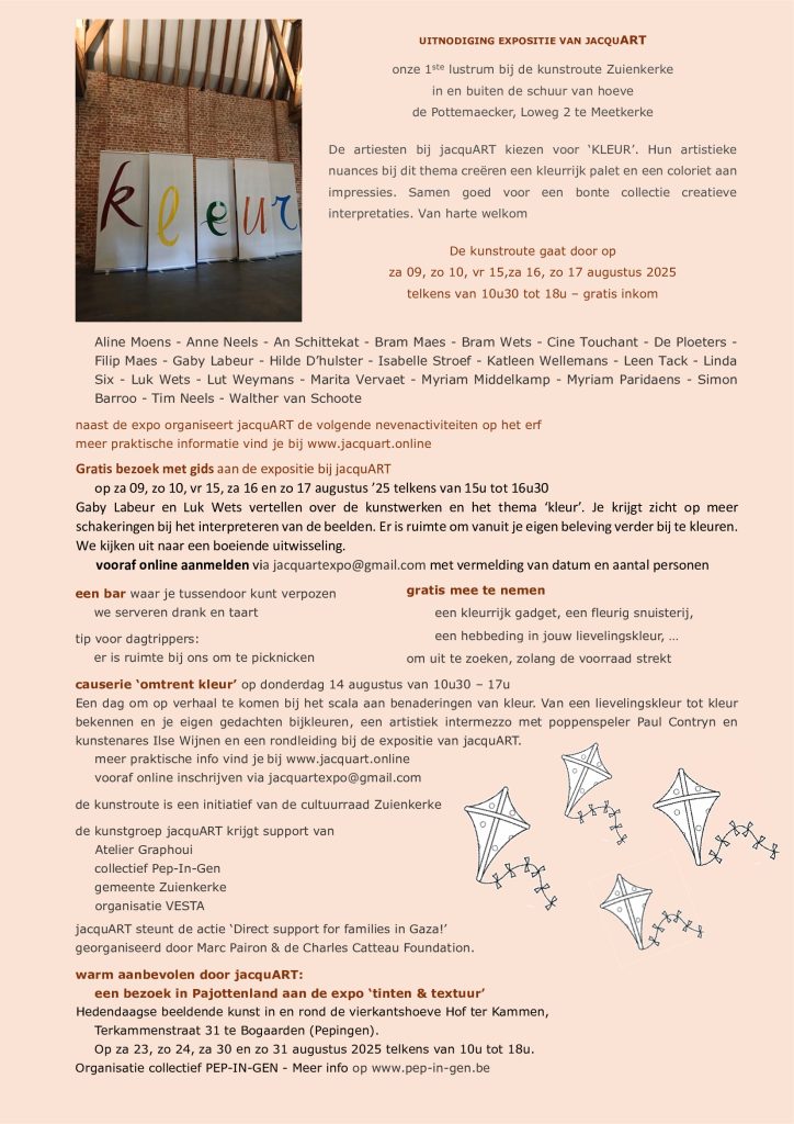 15 juli 2025expo ” K L E U R “ Hoeve de Pottemaecker – Loweg 2 8377 Meetkerke 9, 10, 15, 16, 17…