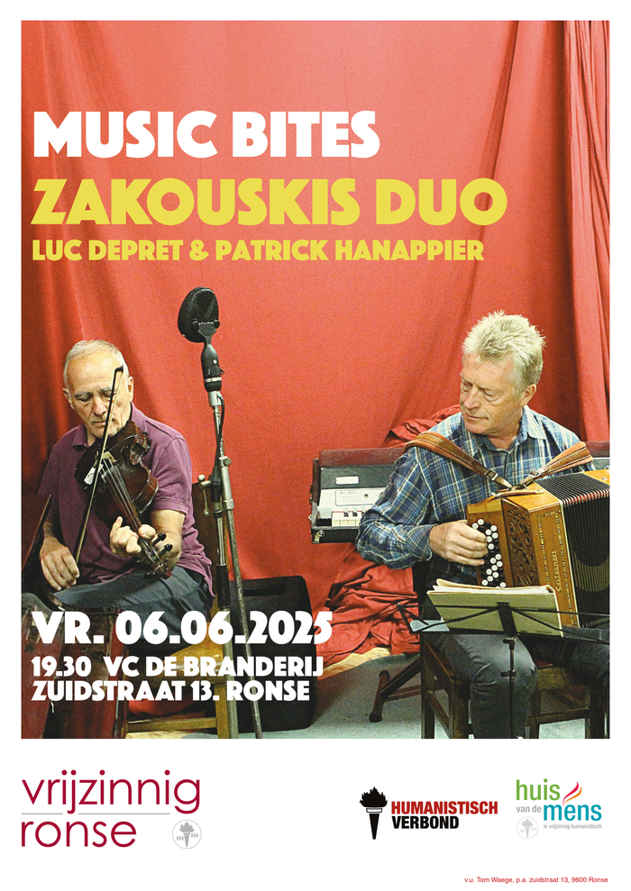 28 mei 2025Music Bites - Aperitiefconcert bij vernissage Expo Emmanuel Martens Vrijdag 06/06 om 19u30 VC De Branderij Zuidstraat 13 Ronse Gratis…