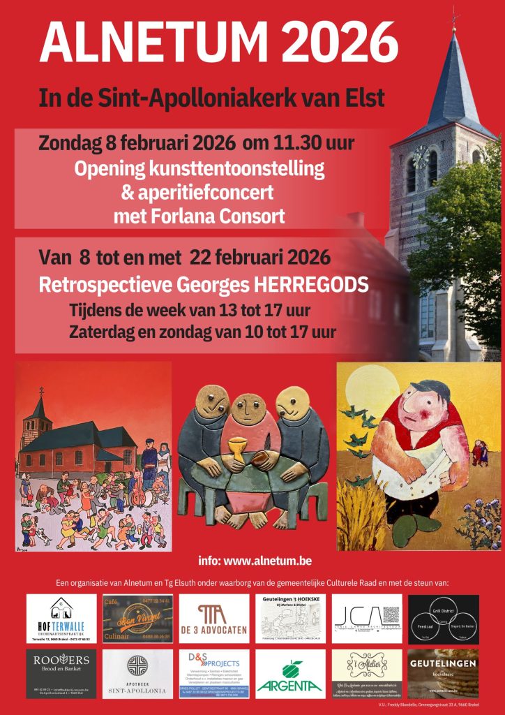 6 januari 2026Kunsttentoonstelling in de Sint-Apolloniakerk te Elst Alnetum 2026 van 8 tot 22 februari 2026 Sint-Apolloniakerk Dorp, 9660 Brakel bezoek tijdens…