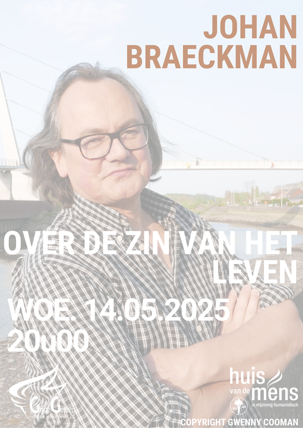 2 april 2025Lezing 'Over de zin van het leven' door filosoof en professor Johan Braeckman Woe 14 mei - 20u00 Meer informatie…