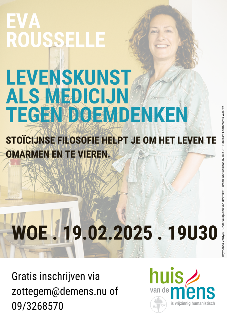 4 februari 2025Levenskunst als medicijn tegen doemdenken woensdag 19 februari 2025 - 19u30 huisvandeMens Zottegem, Hoogstraat 42 gratis - Graag inschrijven via…