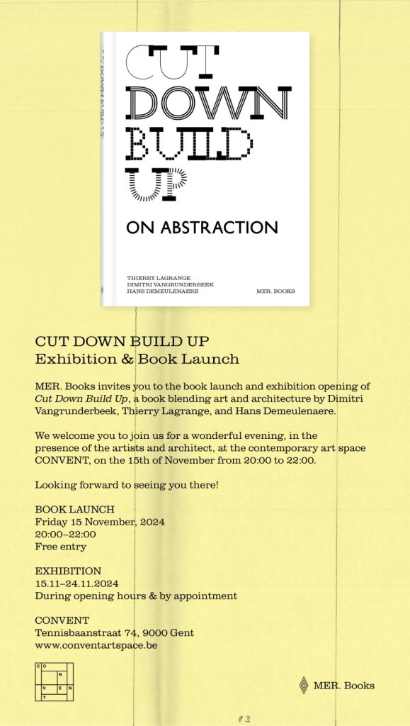 29 oktober 2024Hans Demeulenaere, Thierry Lagrange, Dimitri Vangrunderbeek book launch and exhibition opening exhibition and book launch: Friday 15.11.2024, 8-10 p.m. exhibition:…