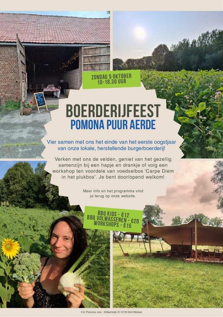 10 september 2025vier met ons mee! zondag 5 oktober, 10.00 - 18.30 uur Boembeke 9, 9660 Brakel Programma: rondleiding, (veggie)BBQ, workshops, kinderanimatie…