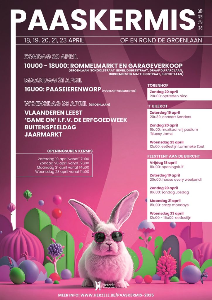 17 april 2025Herzele viert Pasen: van paaskermis tot jaarmarkt Van 18 tot 23 april in HERZELE De paasvakantie eindigt met een knal,…