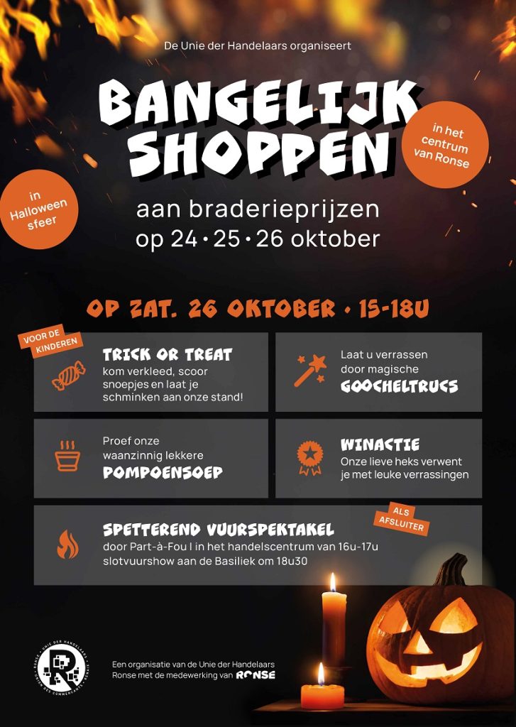 17 oktober 2024een dag vol magie, verrassingen en griezelplezier! Zaterdag 26 oktober vanaf 14u Locatie:Â Winkelstraten van Ronse Hoogtepunt:Â Vuurshow om 18.30 uur aan…