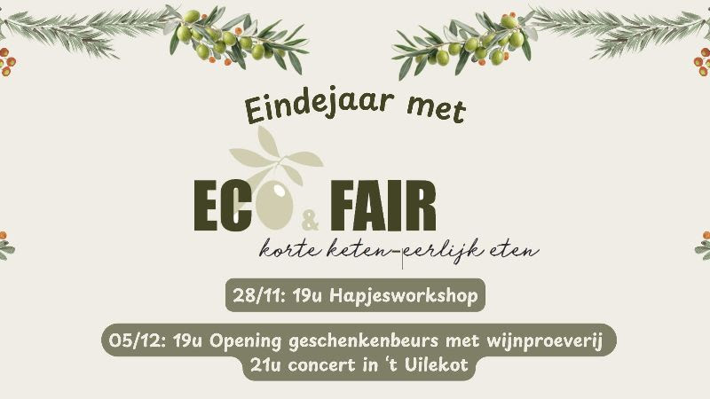 18 november 2025Feestelijke opening Geschenkenbeurs Eco & Fair Vr. 05.12, 19u Geschenkenbeurs: Groenlaan 31. Locatie concert: 't Uilekot, Groenlaan 41, Herzele. Van…