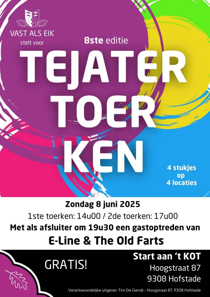 3 juni 2025Vast als Eik Zondag 8 juni 2025 om 14u Zondag 8 juni 2025 om 17u Parochiaal Centrum Hofstade Dorp 10…