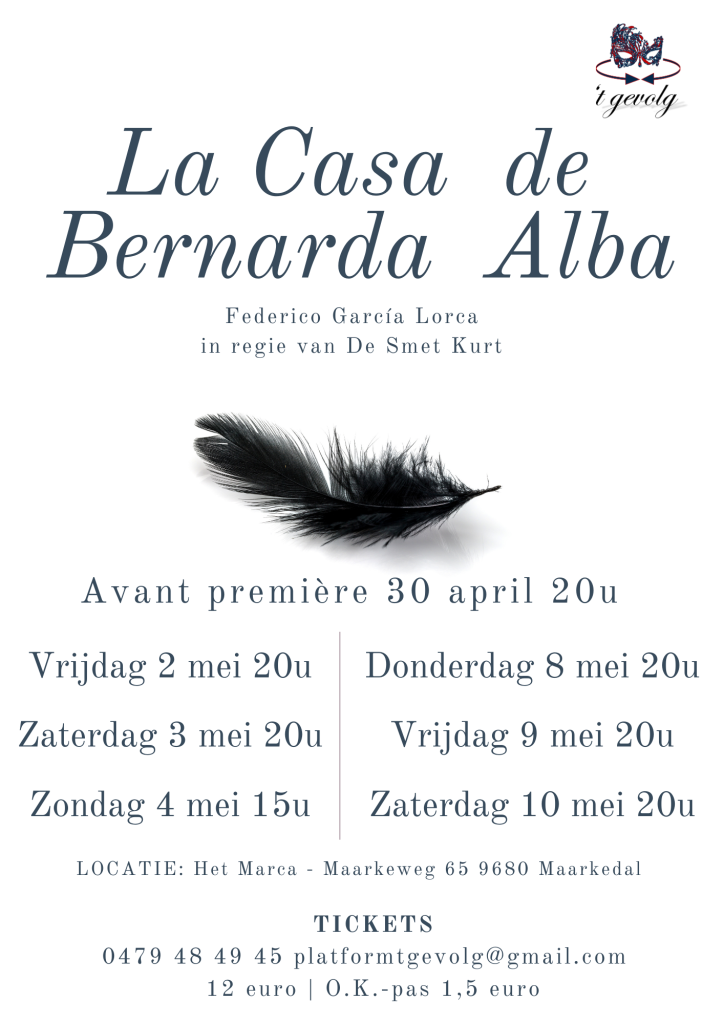 30 maart 2025La Casa de Bernarda Alba Avant première op woensdag 30 april. Voorstellingen van vrijdag 2 tot en met zondag 4…
