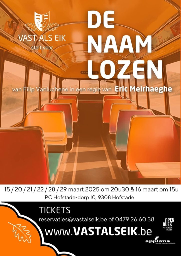 2 maart 2025De Naamlozen Donderdag 20 maart om 20u30 Vrijdag 21 en 28 maart om 20u30 Zaterdag 15, 22 en 29 maart…