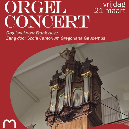 orgelconcert vrijdag 21 maart 2025 in GC het Marca. Deuren open om 19.30 uur, start