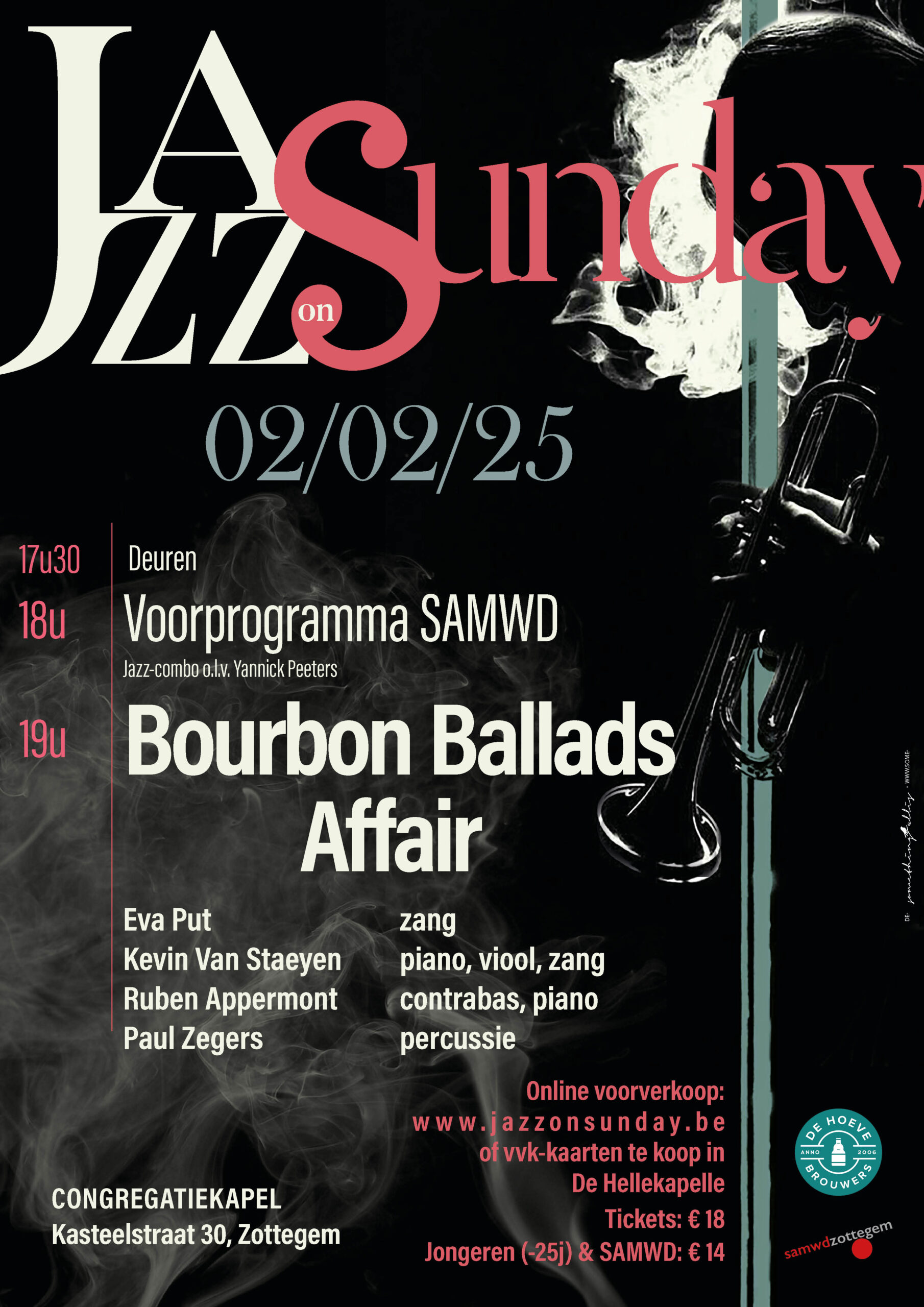 Jazz on Sunday Zondag 02 februari 2025 Deuren 17u30 – Voorprogramma 18u30 – Combo stedelijke